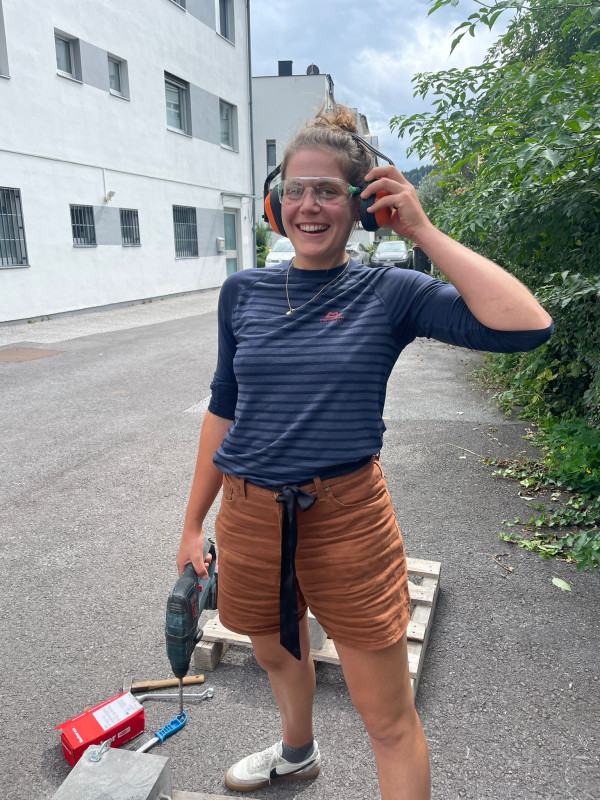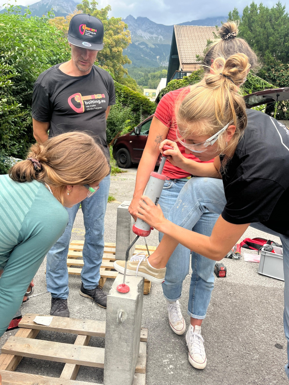 Nach der Theorie kamen wir nach einer leckeren Mittagspause zu Praxis. Hier durften wir alle einen Bohr -und Klebehaken in einem Betonblock setzen. Gerhard schaute uns dabei mit viel Fachwissen und Erfahrung über die Schulter und teilte mit uns seine Tipps und Tricks.
